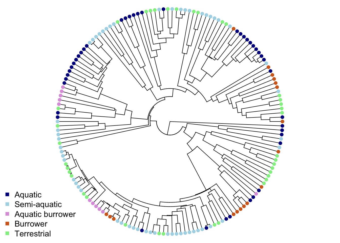 legend = c("Aquatic", "Semi-aquatic", "Aquatic burrower",